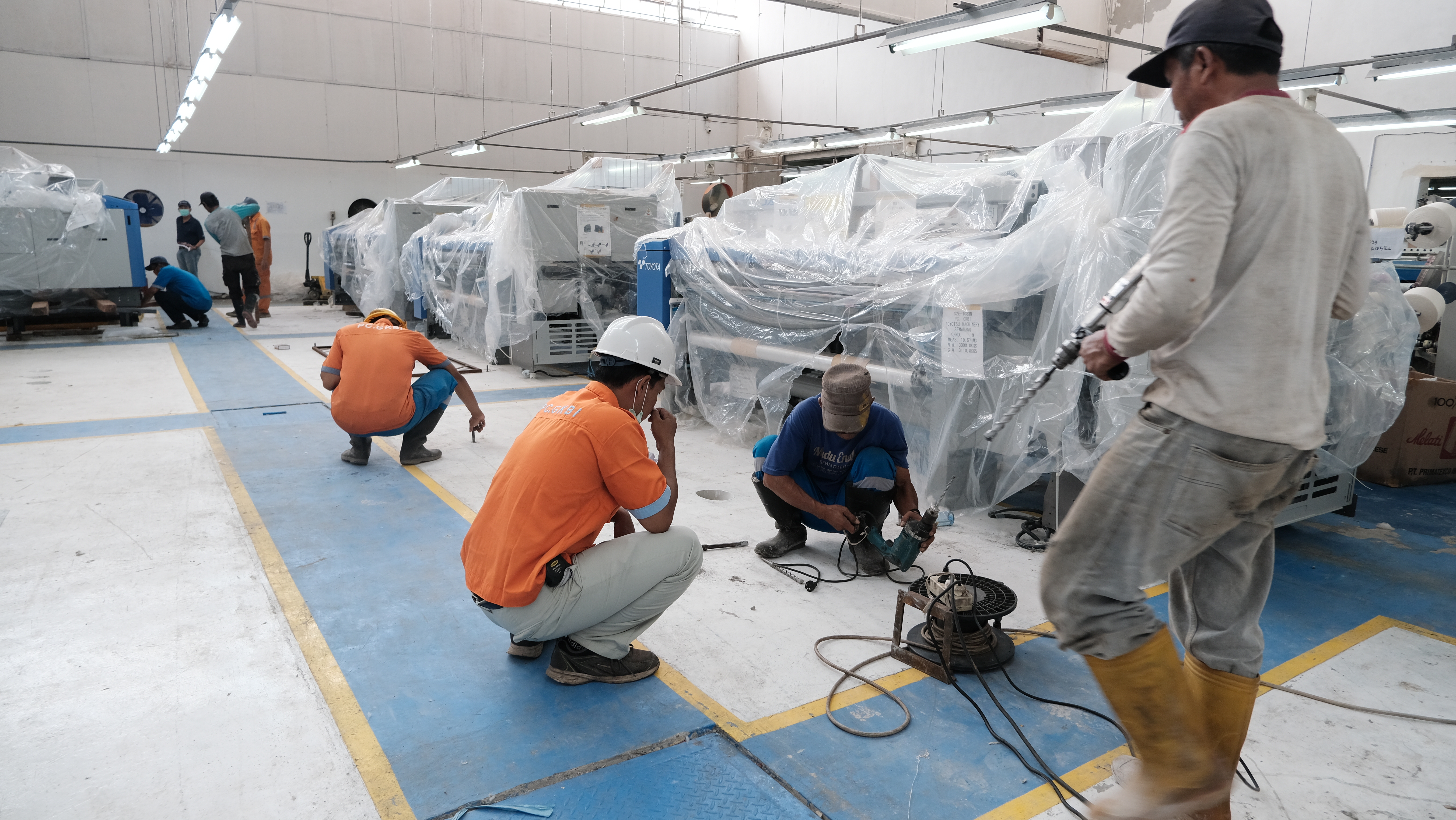 Sesampainya di ruangan produksi, mesin JAT 910 langsung melalui tahap penempatan dan penyusunan posisi. Para teknisi kemudian melakukan proses pemasangan, termasuk pengecekan kelistrikan, leveling mesin, dan pengencangan seluruh komponen penting. Tahap instalasi ini merupakan langkah penting agar mesin dapat beroperasi dengan optimal dan aman.